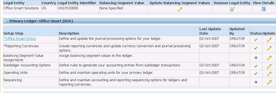 This completes out setup of the Legal Entity, the Primary Ledger and the Operating Unit, using the Accounting Setup Manager.