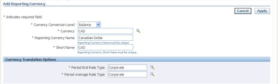OSS also decides to add the Canadian Dollar as a Reporting Currency, as shown below.