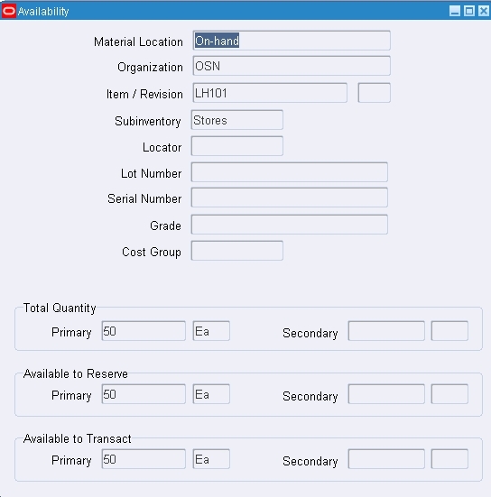 Once the transaction is saved, Jennifer navigates to the On-hand Quantity form and queries the Material Workbench. She wants to know if the on-hand balance has been updated. To her satisfaction, this is what she finds.